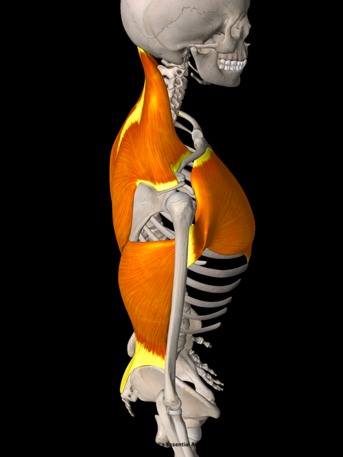 上記した肩甲骨周囲の筋肉群の筋膜リリースが起こります。